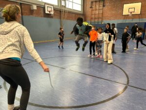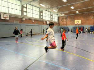 Am 06.10.2025 nahm die Klasse 4c unserer Grundschule mit großer Begeisterung am Skipping Hearts Workshop der Deutschen Herzstiftung teil. In 90 bewegungsreichen Minuten lernten die Kinder verschiedene Einzelsprünge, Partnersprünge und erarbeiteten gemeinsam eine kreative Seilspring-Choreografie.
