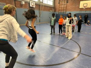 Skipping Hearts möchte Kinder zu mehr Bewegung motivieren und dabei Herz und Kreislauf stärken – und das mit viel Spaß und Musik. Die Schüler*innen der 4c waren mit vollem Einsatz dabei und zeigten am Ende stolz ihre Ergebnisse bei einer Aufführung für den Jahrgang 1.