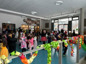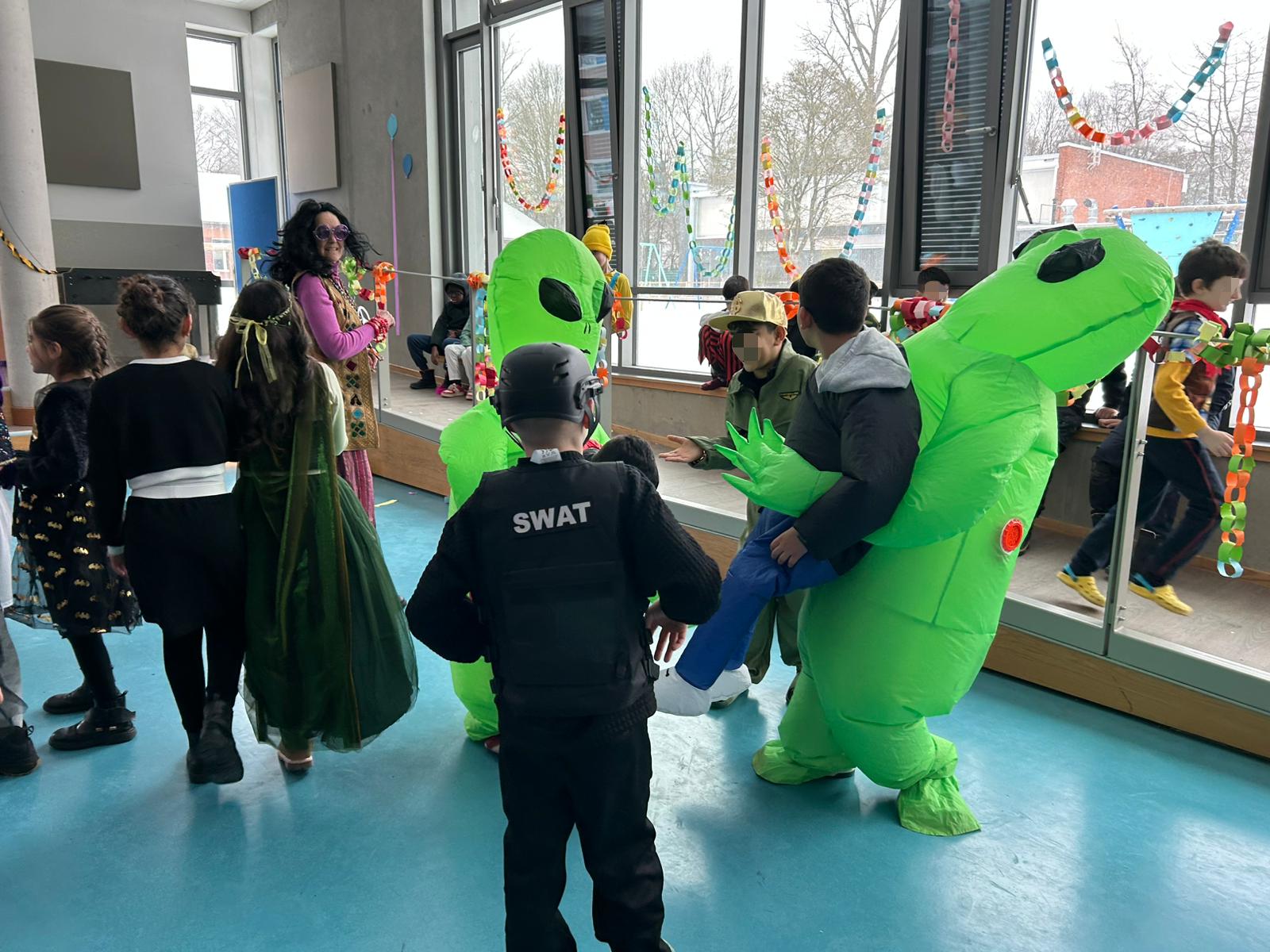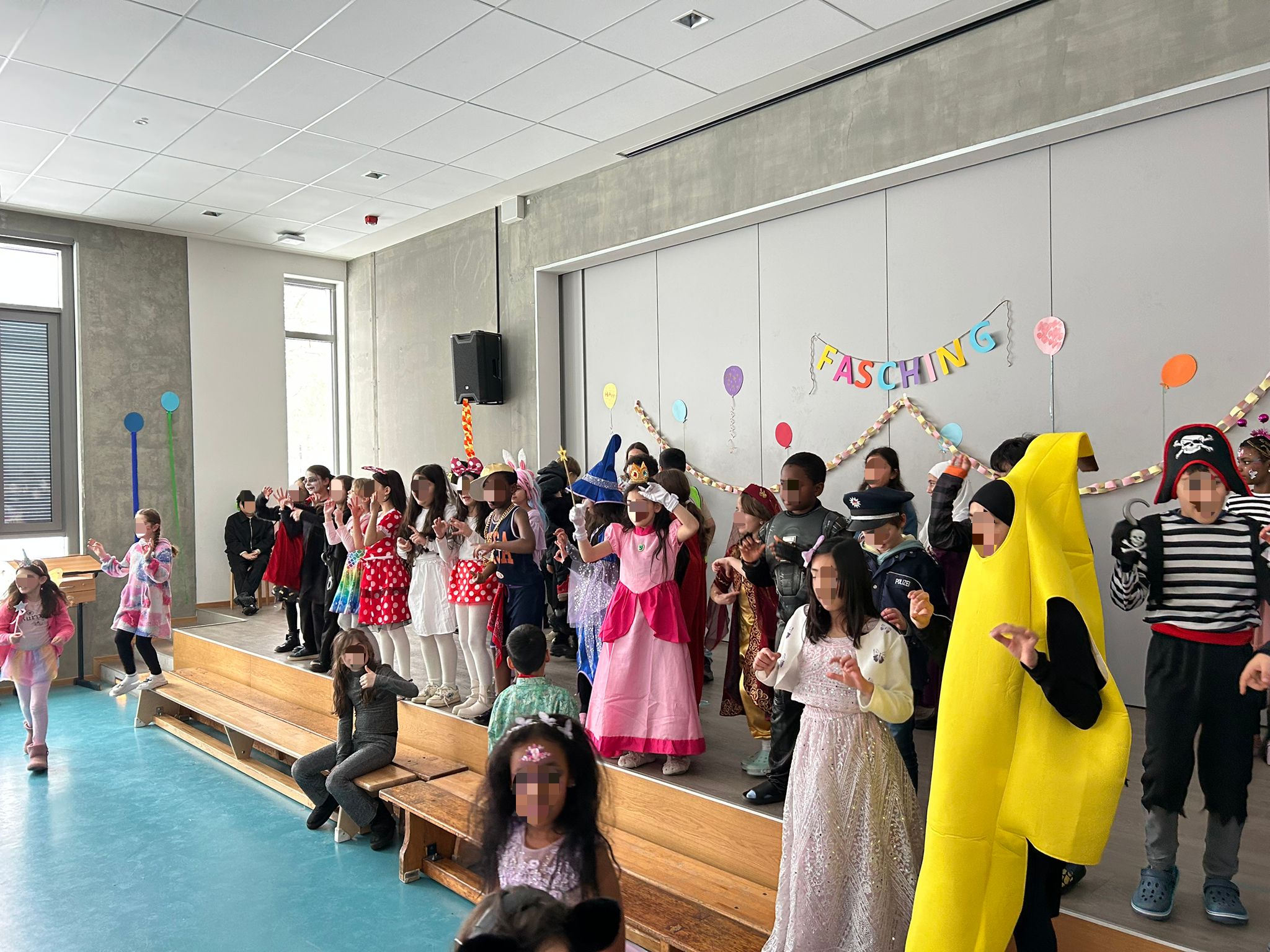 In den Klassenräumen wurde gespielt, getanzt und gemeinsam gefeiert. Zwischendurch stärkten sich alle bei leckeren Snacks. Zur großen Faschingsfeier versammelten sich alle Schüler*innen in der Pausenhalle. Dort erklangen fröhliche Lieder und alle hatten einfach eine tolle Zeit miteinander.