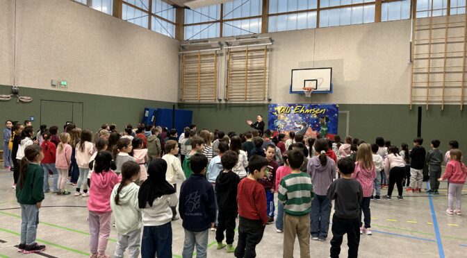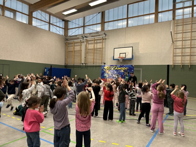 Am 28.01.2026 verwandelte sich die Turnhalle der Grundschule Archenholzstraße wieder in einen Ort voller Musik, Bewegung und Freude: Der Kindermusiker, Olli Ehmsen, war erneut zu Besuch und hat die Kinder aus der Vorschule sowie den Jahrgängen 1 und 2 mit einem interaktiven Mitmachkonzert begeistert.