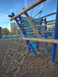 Der große Pausenhof, ein Fußballplatz, große Rasenflächen und unterschiedliche Spielgeräte sollen den Schüler*innen genügend Raum bieten, ihren Bewegungsdrang auszuleben.
