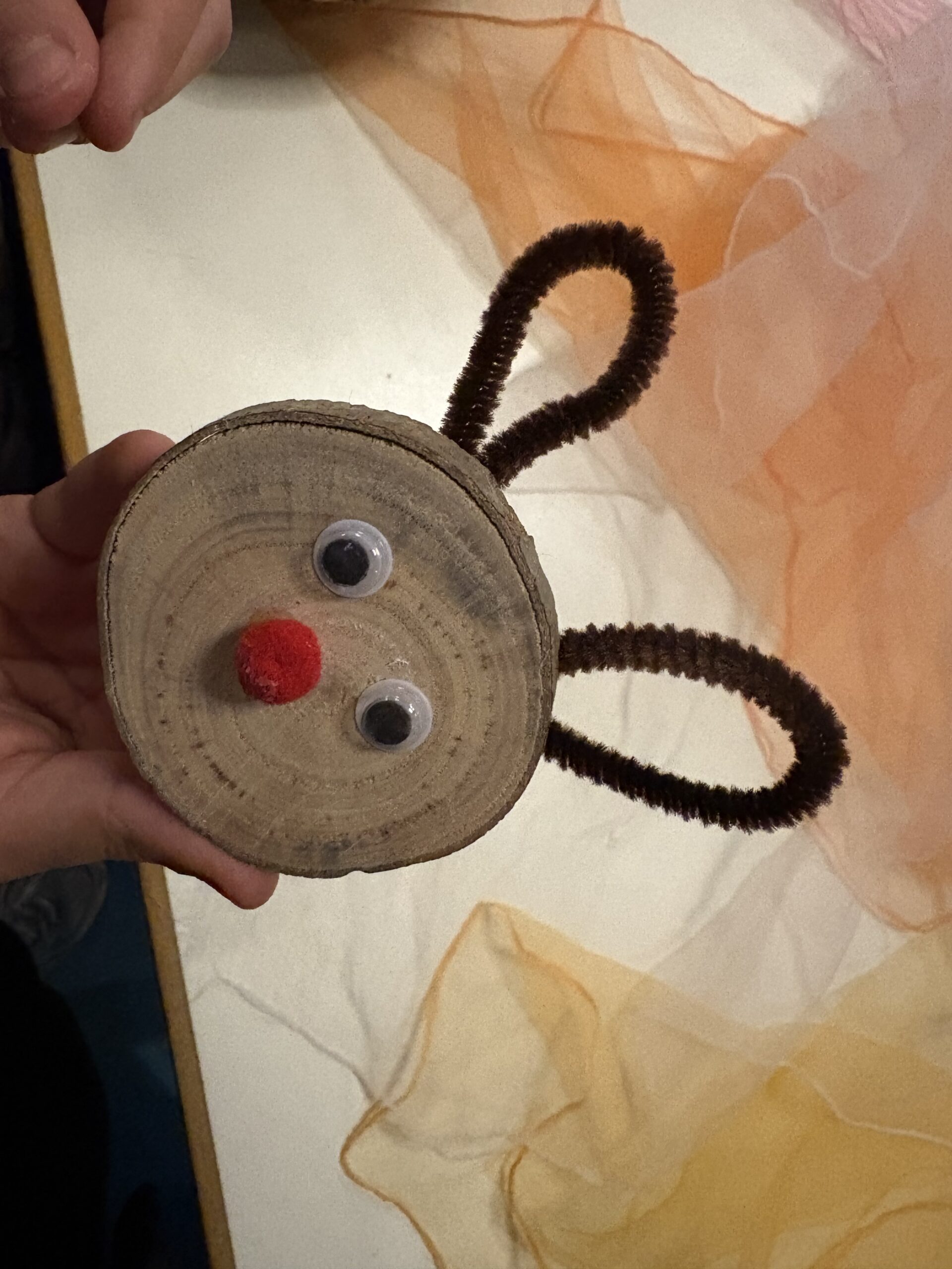 In Haus 2 gab es viele Bastelangebote. Die Kinder konnten Holzrentiere bauen, Glitzersternchen gestalten und Filzen ausprobieren. An vielen weiteren Tischen wurde gemalt, geschnitten, geklebt und gebastelt. Ein besonderes Highlight war die Fotobox: Dort konnten sich die Familien verkleiden und ein lustiges Erinnerungsfoto machen.
